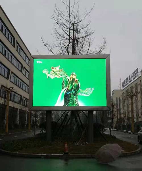 户外屏推荐户外P5的全彩屏幕是因为面积够大,亮度,防水要求较高。采用了双立柱的成力方式,钢架焊好之后采用了简易箱体,后期用铝塑板封边做防水,加装了空调来解决散热的问题,最终效果完美呈现。