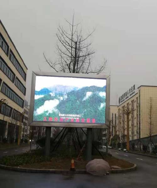 此次项目甲方为泸州江南科技产业园,室内显示屏安装位置在一楼食堂和一楼大厅靠墙,户外显示屏安装位置在园区绿化带内。室内显示屏两块,户外显示屏两块,经过友好协商,在室内采用P2.5全彩显示屏,户外采用户外P5全彩显示屏。