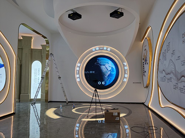 推荐P2.0全彩的原因有三点:一是因为相对于售楼部来说,他们的使用场景,相对来说比精度要求比较高,效果要能展现出来;二是小间距的屏幕适合的对应场地就是多媒体智慧展厅、售楼部播放广告,小间距宽视角、高刷新率、高对比度等特点可以让画质更清晰、细腻,在屏幕前任意角度都能完美的看到其中的画面,不会产生重影、闪烁等影响顾客观影体验的状况,在室内能营造出活跃、浪漫、轻松等各种气氛,。三是因为是两块圆形异形屏,与激光投影互动设备完美融合,实时显示互动内容,所以精度不宜太高,所以2.0刚好合适。