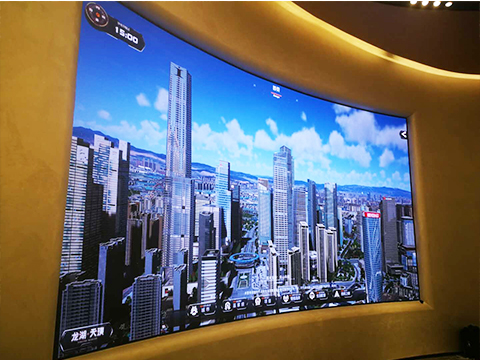 推荐P1.8全彩的原因有三点:一是因为相对于售楼部介绍楼盘来说,他们的使用场景,相对来说要求较高,效果要能展现出来;二是小间距的屏幕适合的对应场地就是政府大楼办公厅、会议厅等,小间距宽视角、高刷新率、高对比度等特点可以让画质更清晰、细腻,在屏幕前任意角度都能完美的看到其中的画面,不会产生重影、闪烁等影响顾客观影体验的状况,三是此屏为弧形屏,用钢架焊接结构,无箱体,纯手工拼接,单块模组尺寸越小,效果越好。